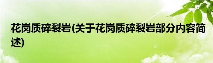 花岗质碎裂岩(关于花岗质碎裂岩部分内容简述)