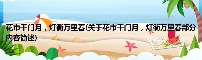 花市千门月,灯衢万里春(关于花市千门月,灯衢万里春部分内容简述)