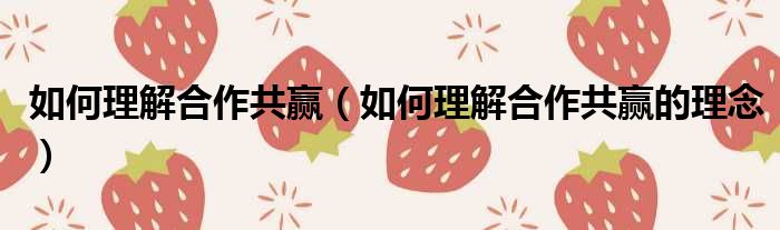 导读 大家好,小活来为大家解答以上的问题。如何理解合作共赢,如何理解合作共赢的理念这个很多人还不知道,现在让我们一起来看看吧!1、合作共赢