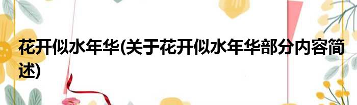 大家好,今天小方来说说一篇关于花开似水年华,关于花开似水年华部分内容简述的文章,那么现在就为大家来简单介绍下,希望对各位小伙伴们有所帮助。