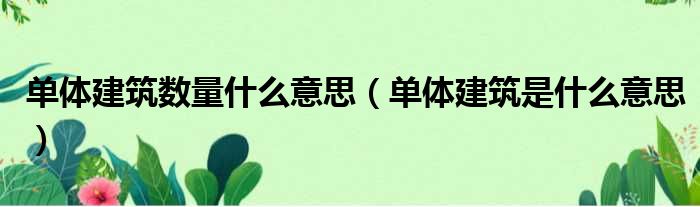 导读 大家好,小活来为大家解答以上的问题。单体建筑数量什么意思,单体建筑是什么意思这个很多人还不知道,现在让我们一起来看看吧!1、单体建筑