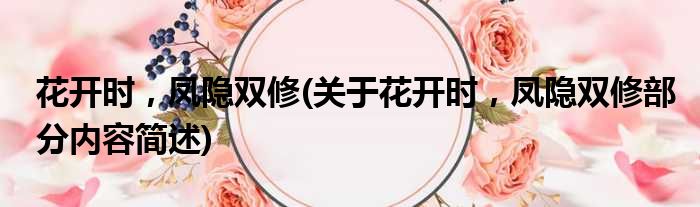花开时,凤隐双修(关于花开时,凤隐双修部分内容简述)