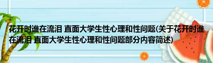 大家好,今天小方来说说一篇关于花开时谁在流泪 直面大学生性心理和性问题,关于花开时谁在流泪 直面大学生性心理和性问题部分内容简述的文章,那么现在就为大家来简单介绍下,希望对各位小伙伴们有所帮助。