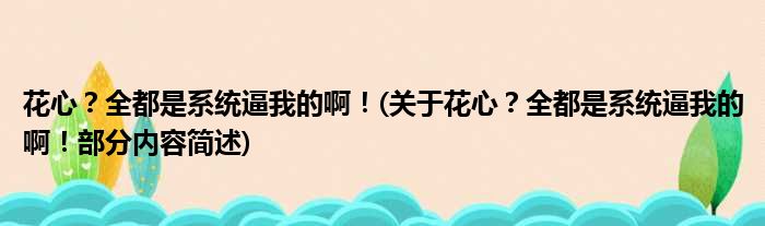 大家好,今天小方来说说一篇关于花心?全都是系统逼我的啊!,关于花心?全都是系统逼我的啊!部分内容简述的文章,那么现在就为大家来简单介绍下,希望对各位小伙伴们有所帮助。