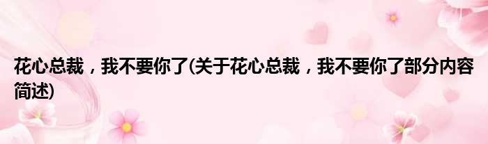 花心总裁,我不要你了(关于花心总裁,我不要你了部分内容简述)