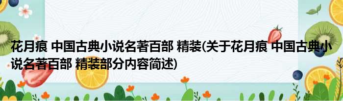 花月痕 中国古典小说名著百部 精装(关于花月痕 中国古典小说名著百部 精装部分内容简述)