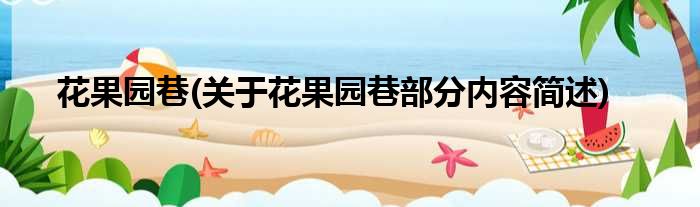 导读 大家好,今天小方来说说一篇关于花果园巷,关于花果园巷部分内容简述的文章,那么现在就为大家来简单介绍下,希望对各位小伙伴们有所帮助。