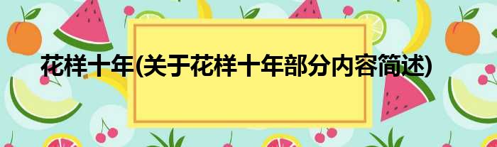 导读 大家好,今天小方来说说一篇关于花样十年,关于花样十年部分内容简述的文章,那么现在就为大家来简单介绍下,希望对各位小伙伴们有所帮助。