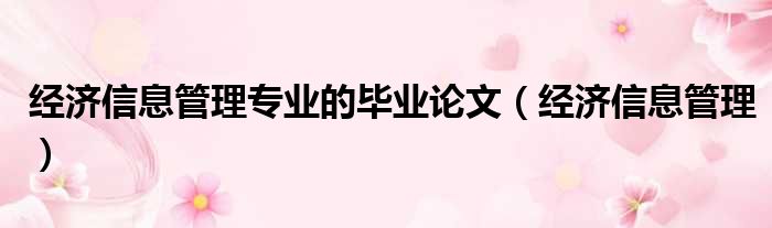经济信息管理专业的毕业论文(经济信息管理)