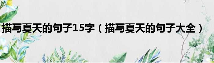 大家好,小活来为大家解答以上的问题。描写夏天的句子15字,描写夏天的句子大全这个很多人还不知道,现在让我们一起来看看吧!