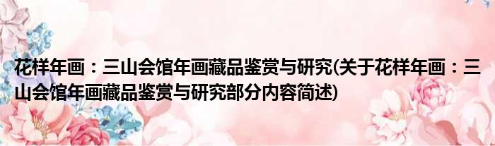 花样年画:三山会馆年画藏品鉴赏与研究(关于花样年画:三山会馆年画藏品鉴赏与研究部分内容简述)