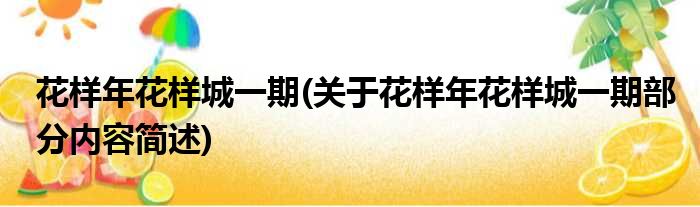 花样年花样城一期(关于花样年花样城一期部分内容简述)