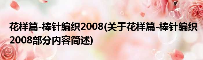 花样篇-棒针编织2008(关于花样篇-棒针编织2008部分内容简述)