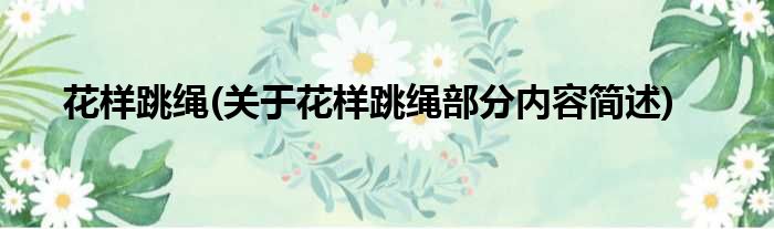 导读 大家好,今天小方来说说一篇关于花样跳绳,关于花样跳绳部分内容简述的文章,那么现在就为大家来简单介绍下,希望对各位小伙伴们有所帮助。