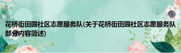 花桥街田园社区志愿服务队(关于花桥街田园社区志愿服务队部分内容简述)