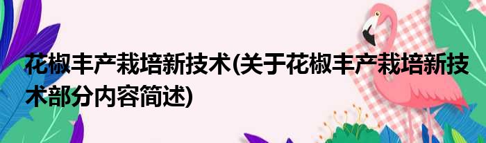 花椒丰产栽培新技术(关于花椒丰产栽培新技术部分内容简述)
