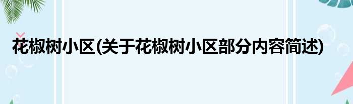 大家好,今天小方来说说一篇关于花椒树小区,关于花椒树小区部分内容简述的文章,那么现在就为大家来简单介绍下,希望对各位小伙伴们有所帮助。
