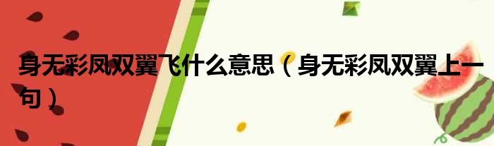 身无彩凤双翼飞什么意思(身无彩凤双翼上一句)