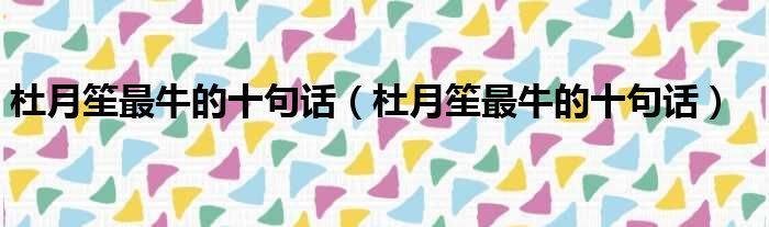 杜月笙最牛的十句话(杜月笙最牛的十句话)