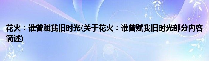 花火:谁曾赋我旧时光(关于花火:谁曾赋我旧时光部分内容简述)