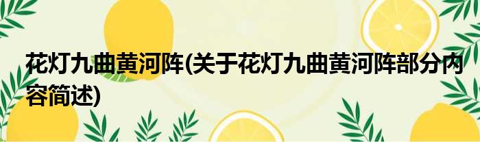 花灯九曲黄河阵(关于花灯九曲黄河阵部分内容简述)
