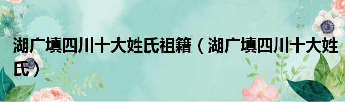 湖广填四川十大姓氏祖籍(湖广填四川十大姓氏)