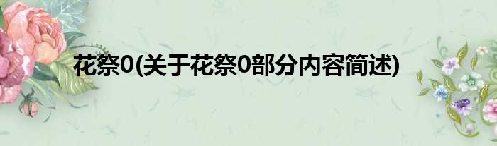 导读 大家好,今天小方来说说一篇关于花祭0,关于花祭0部分内容简述的文章,那么现在就为大家来简单介绍下,希望对各位小伙伴们有所帮助。
