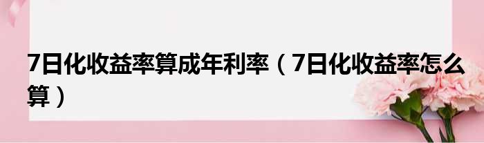 导读 大家好,小活来为大家解答以上的问题。7日化收益率算成年利率,7日化收益率怎么算这个很多人还不知道,现在让我们一起来看看吧!1、7日年化收