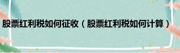 大家好,小活来为大家解答以上的问题。股票红利税如何征收,股票红利税如何计算这个很多人还不知道,现在让我们一起来看看吧!