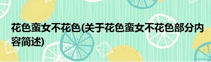 花色蛮女不花色(关于花色蛮女不花色部分内容简述)