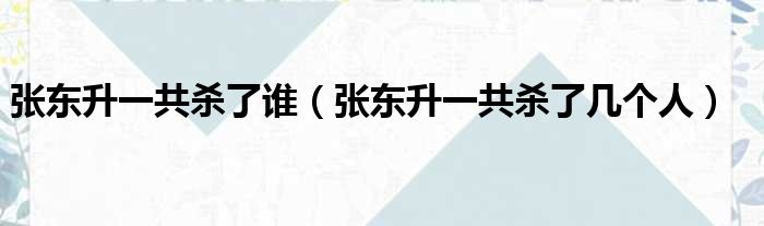 大家好,小活来为大家解答以上的问题。张东升一共杀了谁,张东升一共杀了几个人这个很多人还不知道,现在让我们一起来看看吧!