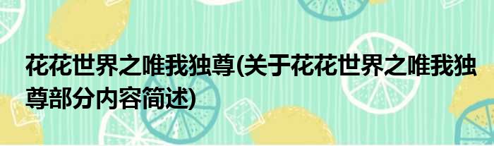 花花世界之唯我独尊(关于花花世界之唯我独尊部分内容简述)