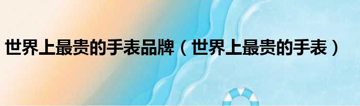 导读 大家好,小活来为大家解答以上的问题。世界上最贵的手表品牌,世界上最贵的手表这个很多人还不知道,现在让我们一起来看看吧!1、世界最贵的