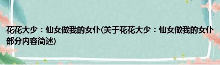导读 大家好,今天小方来说说一篇关于花花大少:仙女做我的女仆,关于花花大少:仙女做我的女仆部分内容简述的文章,那么现在就为大家来简单介绍
