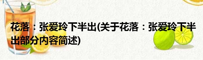 花落:张爱玲下半出(关于花落:张爱玲下半出部分内容简述)