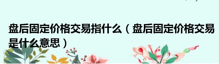 盘后固定价格交易指什么(盘后固定价格交易是什么意思)