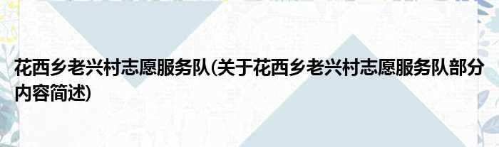 花西乡老兴村志愿服务队(关于花西乡老兴村志愿服务队部分内容简述)