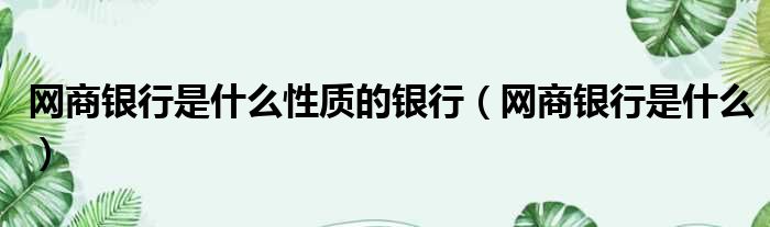 大家好,小活来为大家解答以上的问题。网商银行是什么性质的银行,网商银行是什么这个很多人还不知道,现在让我们一起来看看吧!