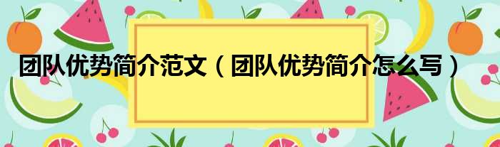 大家好,小活来为大家解答以上的问题。团队优势简介范文,团队优势简介怎么写这个很多人还不知道,现在让我们一起来看看吧!