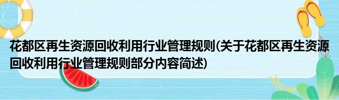 花都区再生资源回收利用行业管理规则(关于花都区再生资源回收利用行业管理规则部分内容简述)