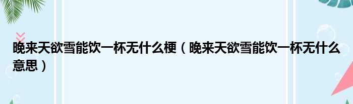 晚来天欲雪能饮一杯无什么梗(晚来天欲雪能饮一杯无什么意思)