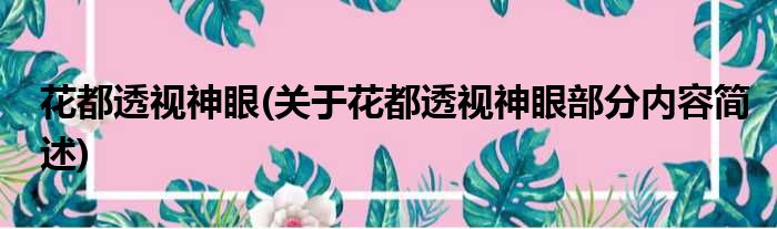 花都透视神眼(关于花都透视神眼部分内容简述)