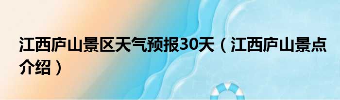大家好,小活来为大家解答以上的问题。江西庐山景区天气预报30天,江西庐山景点介绍这个很多人还不知道,现在让我们一起来看看吧!