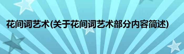 大家好,今天小方来说说一篇关于花间词艺术,关于花间词艺术部分内容简述的文章,那么现在就为大家来简单介绍下,希望对各位小伙伴们有所帮助。