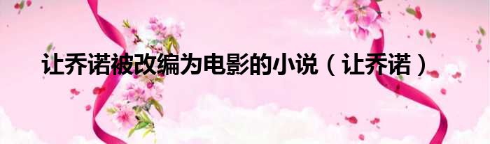 大家好,小活来为大家解答以上的问题。让乔诺被改编为电影的小说,让乔诺这个很多人还不知道,现在让我们一起来看看吧!
