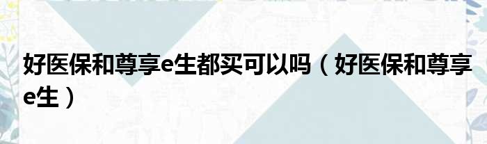 好医保和尊享e生都买可以吗(好医保和尊享e生)