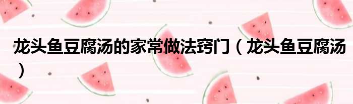 龙头鱼豆腐汤的家常做法窍门(龙头鱼豆腐汤)