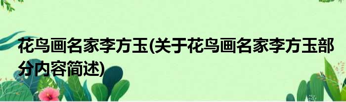 花鸟画名家李方玉(关于花鸟画名家李方玉部分内容简述)