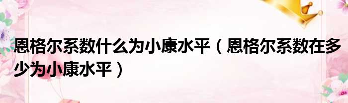 恩格尔系数什么为小康水平(恩格尔系数在多少为小康水平)
