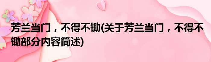 导读 大家好,今天小方来说说一篇关于芳兰当门,不得不锄,关于芳兰当门,不得不锄部分内容简述的文章,那么现在就为大家来简单介绍下,希望对各